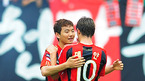[OSEN=서울월드컵경기장, 민경훈 기자] '쏘나타 K리그 2010' FC 서울과 인천 유나이티드의 24라운드 경기가 3일 오후 서울월드컵경기장에서 열렸다. 전반 43분 서울 이승렬이 선취 헤딩슛을 성공시킨 후 데얀과 기쁨을 나누고있다./rumi@osen.co.kr