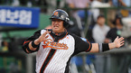 [OSEN=부산,김영민 기자]3일 부산 사직 경기장에서 열린 '2010 CJ 마구마구 프로야구 준플레이오프 4차전' 두산 베어스와 롯데 자이언츠 경기 5회말 2사 2,3루 강민호 동점 적시타를 날리고 2루에서 환호하고 있다./ ajyoung@osen.co.kr