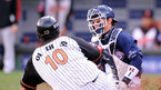 [OSEN=부산,김영민 기자]3일 부산 사직 경기장에서 열린 '2010 CJ 마구마구 프로야구 준플레이오프 4차전' 두산 베어스와 롯데 자이언츠 경기 5회말 무사 1,2루 가르시아 안타때 2루 주자 이대호 홈까지 쇄도하였으나 태그아웃 처리 되었다./ ajyoung@osen.co.kr