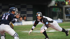 [OSEN=부산,김영민 기자]3일 부산 사직 경기장에서 열린 '2010 CJ 마구마구 프로야구 준플레이오프 4차전' 두산 베어스와 롯데 자이언츠 경기 5회말 무사 1,2루 가르시아 중견수 앞에 덜어지는 안타때 2루 주자 이대호 홈까지 쇄도했으나 태그아웃 처리되고 있다.