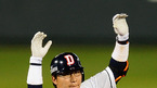 [OSEN=잠실,박준형 기자] 5일 잠실구장에서 열린 '2010 CJ마구마구 프로야구' 준플레이오프 5차전 두산 베어스와 롯데 자이언츠의 경기 2회말 1사 1,2루 두산 용덕한이 중견수 앞에 떨어지는 2타점 적시타를 날린뒤 환호하고 있다. /