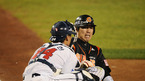 [OSEN=잠실,김영민 기자]5일 잠실 경기장에서 열린 '2010 CJ 마구마구 프로야구 준플레이오프 5차전' 두산 베어스와 롯데 자이언츠 경기 3회초 무사 1,3루 황재균 3루수앞 땅볼때 3루 주자 전준우 홈에서 아웃되고 있다./ ajyoung@osen.co.kr