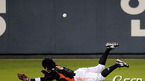 [OSEN=잠실,박준형 기자] 5일 잠실구장에서 열린 '2010 CJ마구마구 프로야구' 준플레이오프 5차전 두산 베어스와 롯데 자이언츠의 경기 2회말 1사 1,2루 두산 용덕한의 중견수 앞에 떨어지는 2타점 적시타때 롯데 전준우 중견수가 몸을 날려 다