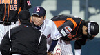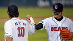 [OSEN=잠실,박준형 기자] 5일 잠실구장에서 열린 '2010 CJ마구마구 프로야구' 준플레이오프 5차전 두산 베어스와 롯데 자이언츠의 경기 2회초 1사 1루 두산 최준석의 호수비로 병살아웃시킨 김선우가 최준석을 격려하며 덕아웃으로 향하고 있다