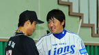 [OSEN=대구,지형준 기자] 6일 오후 대구시민운동장 실내체육관 기자회견장에서 열린 2010 프로야구 플레이오프 미디어데이를 마치고 두산 임재철과 삼성 진갑용이 인사를 나누고 있다. 2년 만에 플레이오프에서 리턴매치를 벌이는 삼성과