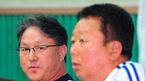 [OSEN=대구,지형준 기자] 6일 오후 대구시민운동장 실내체육관 기자회견장에서 열린 2010 프로야구 플레이오프 미디어데이에서 두산 김경문 감독이 삼성 선동열 감독을 바라보고 있다. 2년 만에 플레이오프에서 리턴매치를 벌이는 삼성과 두산은 역