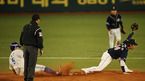 [OSEN=대구,김영민 기자]7일 대구 경기장에서 열린 '2010 CJ 마구마구 프로야구 플레이오프 1차전' 삼성 라이온즈와 두산 베어스 경기 5회말 1사 1루 박석민 중견수 플라이때 2루 주자 조동찬 귀루를 하였으나 포스아웃 처리되고 있다./ ajyoung@osen.co.kr