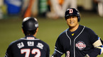 [OSEN=대구,김영민 기자]7일 대구 경기장에서 열린 '2010 CJ 마구마구 프로야구 플레이오프 1차전' 삼성 라이온즈와 두산 베어스 경기 4회초 무사 1루 김동주 좌월 동점 투런 홈런을 날리고 홈인하며 미소를 지어보이고 있다./ ajyoung@osen.co.kr