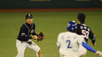 [OSEN=대구,김영민 기자]7일 대구 경기장에서 열린 '2010 CJ 마구마구 프로야구 플레이오프 1차전' 삼성 라이온즈와 두산 베어스 경기 4회말 2사 1,2루 박한이 내야땅볼때 두산 손시헌 유격수가 포구한뒤 오재원 2루수에게 토스하며 1루 주자 김상수를 아웃처리