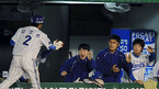 [OSEN=대구,김영민 기자]7일 대구 경기장에서 열린 '2010 CJ 마구마구 프로야구 플레이오프 1차전' 삼성 라이온즈와 두산 베어스 경기 3회말 1사 2루 조동찬 적시타때 2루 주자 김상수 선취득점을 올리며 덕아웃 동료들의 환영을 받고 있다./ ajyoung@osen.co.kr