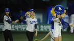[OSEN=대구,김영민 기자]8일 대구 경기장에서 열린 '2010 CJ 마구마구 프로야구 플레이오프 2차전' 삼성 라이온즈와 두산 베어스 경기에 앞서 여성그룹 씨스타 보라가 승리기원 시구를 하고 효린이 시타를 하고 있다./ ajyoung@osen.co.kr