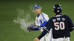 [OSEN=대구,김영민 기자]8일 대구 경기장에서 열린 '2010 CJ 마구마구 프로야구 플레이오프 2차전' 삼성 라이온즈와 두산 베어스 경기 2회말 2사 이영욱 투수앞 땅볼때 두산 선발 히메네스 포구하며 아웃 처리시키고 있다./ ajyoung@osen.co.kr