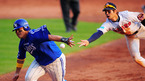 [OSEN=잠실,민경훈 기자] 2010 CJ 마구마구 플레이오프 3차전 두산 베어스와 삼성 라이온즈의 경기가 10일 잠실야구장에서 벌어졌다. 7회초 무사 1루 최형우의 1루수앞 땅볼때 1루주자 박석민이 주루라인을 벗어나며 아웃처리되고 있다./rumi@osen.co.kr