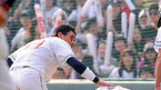 [OSEN=잠실,김영민 기자]10일 잠실 경기장에서 열린 '2010 CJ 마구마구 프로야구 플레이오프 3차전' 삼성 라이온즈와 두산 베어스 경기 3회말 1사 1,3루 김현수 타구가 병살아웃 처리되자 아쉬워하고 있다./ ajyoung@osen.co.kr