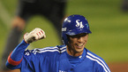 [OSEN=잠실,김영민 기자]10일 잠실 경기장에서 열린 '2010 CJ 마구마구 프로야구 플레이오프 3차전' 삼성 라이온즈와 두산 베어스 경기 연장 11회초 1사 만루 채상병 몸에 맞는 공때 3루 주자 강명구 밀어내기 역전 득점을 올리며 환