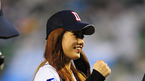 [OSEN=잠실,지형준 기자] 11일 잠실구장에서 열리는 '2010 CJ마구마구 프로야구' 플레이오프 4차전 삼성 라이온즈와 두산 베어스 경기 앞서 시구자로 나선 미쓰에이 수지에 힘차게 공을 던지고 있다. / jpnews@osen.co.kr