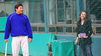 [OSEN=잠실,지형준 기자] 11일 잠실구장에서 열리는 '2010 CJ마구마구 프로야구' 플레이오프 4차전 삼성 라이온즈와 두산 베어스 경기에 앞서 삼성 양준혁이 MBC 스포츠 플러스 김민아 아나운서와 그물망을 사이에 두고 즐겁게 이야기를 나누고 있다.