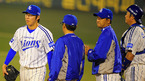 [OSEN=대구,김영민 기자]13일 잠실 경기장에서 열린 '2010 CJ 마구마구 프로야구 플레이오프 5차전' 삼성 라이온즈와 두산 베어스 경기 4회초 2사 1,3루 상황에서 구원등판한 배영수가 마운드를 정현욱에게 넘겨주고 있다./ ajyoung@osen.co.kr