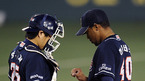 [OSEN=대구,김영민 기자]13일 잠실 경기장에서 열린 '2010 CJ 마구마구 프로야구 플레이오프 5차전' 삼성 라이온즈와 두산 베어스 경기 4회말 1사 1루 최형우 우월투런 홈런을 닐리고 홈인 선행주자 박한이의 환영을 받고 있다./ ajyoung@osen.co.kr