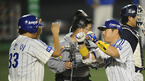 [OSEN=대구,지형준 기자] 13일 대구구장에서 열린 '2010 CJ마구마구 프로야구' 플레이오프 5차전 경기, 4회말 1사 1루에서 삼성 최형우가 투런홈런을 날리고 덕아웃에서 동료선수들의 축하를 받고 있다. / jpnews@osen.co.kr