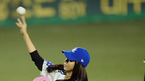 [OSEN=대구,지형준 기자] 13일 오후 대구구장에서 열린 '2010 CJ마구마구 프로야구' 플레이오프 5차전 경기에 앞서 시구자로 나선 탤런트 최아진이 공을 던지고 즐거워하고 있다. / jpnews@osen.co.kr