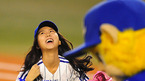 [OSEN=대구,김영민 기자]13일 잠실 경기장에서 열린 '2010 CJ 마구마구 프로야구 플레이오프 5차전' 삼성 라이온즈와 두산 베어스 경기에 앞서 탤런트 최아진이 승리기원 시구를 하고 있다./ ajyoung@osen.co.kr