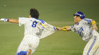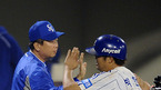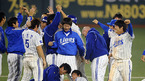 [OSEN=대구,지형준 기자] 13일 대구구장에서 열린 '2010 CJ 마구마구 프로야구 플레이오프 5차전' 삼성 라이온즈와 두산 베어스 경기 삼성이 연장 11회말 2사 만루 박석민 끝내기 안타를 날리며 4년만에 한국시리즈 진출을 했다. 경기 종료후