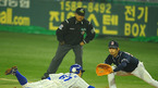 [OSEN=대구,지형준 기자] 13일 대구구장에서 열린 '2010 CJ마구마구 프로야구' 플레이오프 5차전 경기, 8회말 2사 1루에서 삼성 이영욱이 두산 이현승의 견제에 세이프되고 있다. / jpnews@osen.co.kr