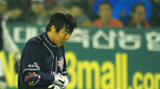 [OSEN=대구,지형준 기자] 13일 대구구장에서 열린 '2010 CJ마구마구 프로야구' 플레이오프 5차전 경기, 6회초 2사 1루에서 대타로 나선 두산 김현수가 내야땅볼에 아웃되고 아쉬워하고 있다. / jpnews@osen.co.kr
