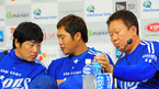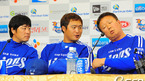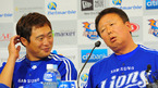 [OSEN=문학,지형준 기자] 14일 오후 인천 문학월드컵컨벤션센터 미추홀에서 열린 2010 프로야구 한국시리즈 미디어데이에서 삼성 선동렬 감독이 옆구리를 만지며 아파하자 진갑용 박한이가 걱정스런 눈빛을 보내고 있다. 7년만에 포스트시즌에서 만