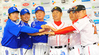 [OSEN=문학,지형준 기자] 14일 오후 인천 문학월드컵컨벤션센터 미추홀에서 열린 2010 프로야구 한국시리즈 미디어데이에서 삼성 진갑용 박한이 선동렬 감독, SK 김성근 감독 김재현 박경완이 손을 맞대고 포토타임을 갖고 있다. 7년만에 포스트시