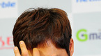 [OSEN=문학,지형준 기자] 14일 오후 인천 문학월드컵컨벤션센터 미추홀에서 열린 2010 프로야구 한국시리즈 미디어데이에서 삼성 박한이가 고개를 숙인채 얼굴을 만지고 있다. 7년만에 포스트시즌에서 만나 사상 처음 한국시리즈에서 격돌