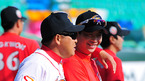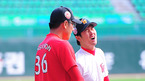 [OSEN=문학, 민경훈 기자] 2010 프로야구 한국시리즈 SK 와이번스와 삼성 라이온스의 1차전 경기가 15일 오후 인천 문학구장에서 열릴 예정인 가운데 양팀이 경기 전 훈련하는 시간을 가졌다. 7년만에 포스트시즌에서 만나 사상 처음 한국시리즈에서 격