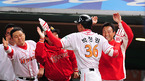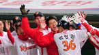 [OSEN=인천,김영민 기자]15일 인천 문학 경기장에서 열린 '2010 CJ 마구마구 프로야구 한국시리즈 1차전' SK 와이번스와 삼성 라이온즈 경기 6회말 2사 1,2루 김재현 1타점 적시타를 날리고 환호하고 있다./ ajyoung@osen.co.kr