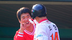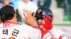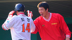 [OSEN=문학, 민경훈 기자] 2010 프로야구 한국시리즈 SK 와이번스와 삼성 라이온스의 2차전 경기가 16일 오후 인천 문학구장에서 열렸다.6회말 첫타석에서 SK 최정이 솔로홈런을 날린 후 덕아웃에서 김광현과 새끼손가락을 걸고 있다. /rumi@osen.co.kr