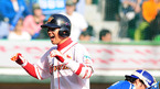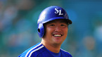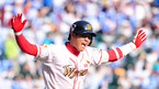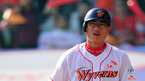 [OSEN=문학, 민경훈 기자] 2010 프로야구 한국시리즈 SK 와이번스와 삼성 라이온스의 2차전 경기가 16일 오후 인천 문학구장에서 열렸다.3회초 박한이가 첫타석에서 친 타구가 중견수 플라이 아웃처리되자 허탈하게 웃고 있다./rumi@osen.co.kr