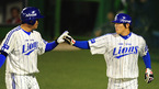 [OSEN=대구, 지형준 기자] 18일 오후 대구구장에서 열린 2010 프로야구 한국시리즈 3차전 SK 와이번스와 삼성 라이온즈의 경기, 1회말 1사 2,3루에서 삼성 최형우의 희생플라이에 홈을 밟은 이영욱이 박한이와 하이파이브를 하고 있다. /jpnews@osen.co.kr