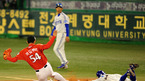 [OSEN=대구,김영민 기자]18일 대구 경기장에서 열린 '2010 CJ 마구마구 프로야구 한국시리즈 3차전' 삼성 라이온즈와 SK 와이번스 경기 2회말 무사 1루 김상수 내야땅볼때 1루 주자 현재윤 2루에서 포스아웃 병살처리 되고 있다./ ajyoung@osen.co.kr