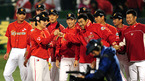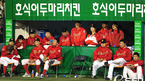 [OSEN=대구, 지형준 기자] 18일 오후 대구구장에서 열린 2010 프로야구 한국시리즈 3차전 SK 와이번스와 삼성 라이온즈의 경기, 9회초 덕아웃의 SK 선수들이 여유로운 표정으로 경기를 바라보고 있다. /jpnews@osen.co.kr