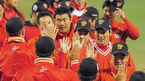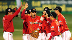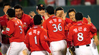 [OSEN=대구,김영민 기자]18일 대구 경기장에서 열린 '2010 CJ 마구마구 프로야구 한국시리즈 3차전' 삼성 라이온즈와 SK 와이번스 경기에서 SK 와이번스가 3연승을 내달리며 통산 세 번째 우승에 단 1승만을 남겼다. 경기 종료후 선수들이 승
