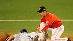 [OSEN=대구, 지형준 기자] 18일 오후 대구구장에서 열린 2010 프로야구 한국시리즈 3차전 SK 와이번스와 삼성 라이온즈의 경기, 3회말 무사 2루에서 SK 박경완에 견제에 아웃당한 삼성 최형우가 2루심을 바라보며 허탈해하고 있다. /jpnews@osen.co.kr