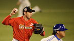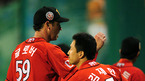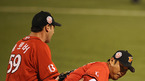 [OSEN=대구, 지형준 기자] 19일 오후 대구구장에서 열린 2010 프로야구 한국시리즈 4차전 SK 와이번스와 삼성 라이온즈의 경기, 2회말 2사 3루에서 삼성 박진만을 투수앞 땅볼로 아웃처리한 SK 글로버가 덕아웃에서 김재현의 축하를 받고 있