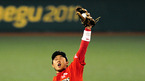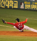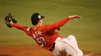 [OSEN=대구, 지형준 기자] 19일 오후 대구구장에서 열린 2010 프로야구 한국시리즈 4차전 SK 와이번스와 삼성 라이온즈의 경기, 1회말 1사에서 SK 최정이 삼성 조동찬의 타구를 점프하며 잡아내고 있다. /jpnews@osen.co.kr