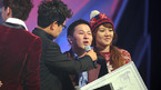 [OSEN=박준형 기자]케이블 채널 Mnet의 프로그램 '슈퍼스타K 시즌 2' 최종 결선 촬영현장이 22일 오후 서울 경희대 평화의 전당에서 공개됐다. 이날 최후 1인으로 선정된 허각이 엄정화의 축하를 받고 있다. /soul1014@osen.co.kr