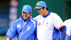 [OSEN=부산,박준형 기자]조범현 감독이 이끄는 광저우 아시안게임 야구대표팀이 27일 오후 부산 사직구장에서 이틀째 훈련에 나섰다. 본격적인 훈련에 앞서 강민호와 조동찬이 이야기를 나누며 몸을 풀고 있다. /soul1014@osen.co.kr