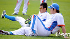 [OSEN=부산,박준형 기자]조범현 감독이 이끄는 광저우 아시안게임 야구대표팀이 27일 오후 부산 사직구장에서 훈련에 나섰다. 추신수와 정근우가 본격적인 훈련 전 스트레칭으로 몸을 풀고 있다. /soul1014@osen.co.kr