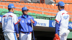 [OSEN=부산,박준형 기자]조범현 감독이 이끄는 광저우 아시안게임 야구대표팀이 28일 오후 부산 사직구장에서 사흘째 훈련에 나섰다. 양현종과 봉중근이 김명성의 수비연습을 지켜보며 즐거워하고 있다. /soul1014@osen.co.kr