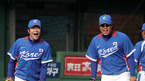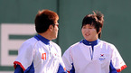 [OSEN=부산,박준형 기자]조범현 감독이 이끄는 광저우 아시안게임 야구대표팀이 28일 오후 부산 사직구장에서 사흘째 훈련에 나섰다. 양현종과 류현진이 아이스크림 내기를 하고 있다. /soul1014@osen.co.kr