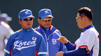[OSEN=부산,박준형 기자]조범현 감독이 이끄는 광저우 아시안게임 야구대표팀이 28일 오후 부산 사직구장에서 사흘째 훈련에 나섰다. 박경완이 류중일 코치로 부터 사인 지도를 받고 있다. /soul1014@osen.co.kr