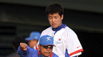 [OSEN=부산,박준형 기자]조범현 감독이 이끄는 광저우 아시안게임 야구대표팀이 28일 오후 부산 사직구장에서 사흘째 훈련에 나섰다. 조범현 감독이 강민호의 포수 송구 자세를 가르치고 있다 /soul1014@osen.co.kr
